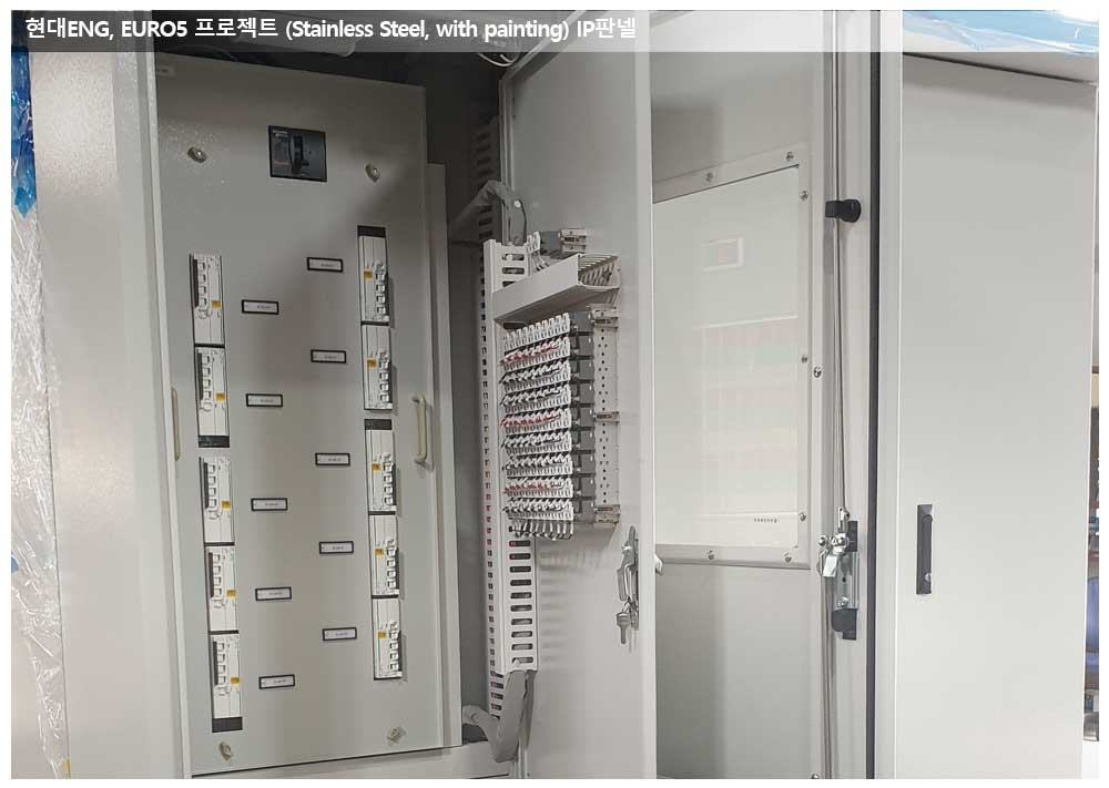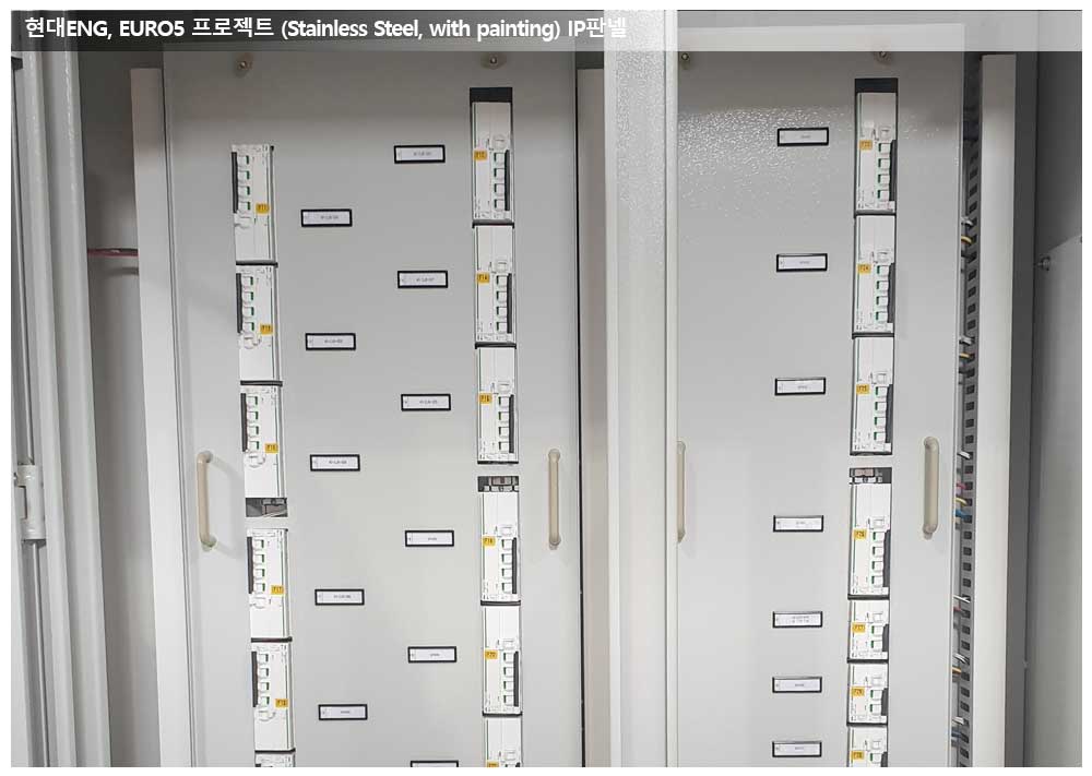 현대ENG, EURO5 프로젝트, IP판넬 페이지 정보 작성자 관리자 작성일19-10-28 13:15 조회14,186회 댓글0건 관련링크 이전글 다음글 목록 본문 공급품목 : IP판넬판넬크기 : 1850*2300*450판넬특징 : Stainless Steel 재질의 판넬에 painting 처리한 판넬입니다. Breaker 독일제품(Schneider)을 사용하였습니다. 댓글목록 등록된 댓글이 없습니다. 이전글 다음글 목록