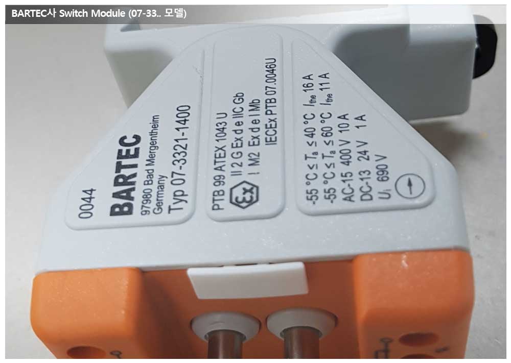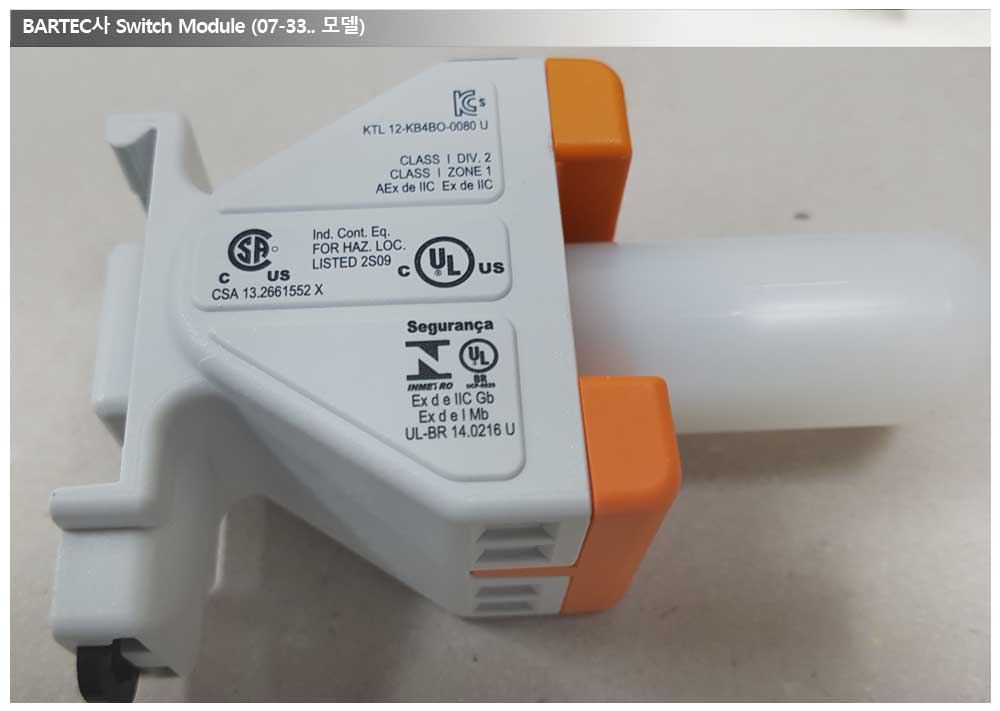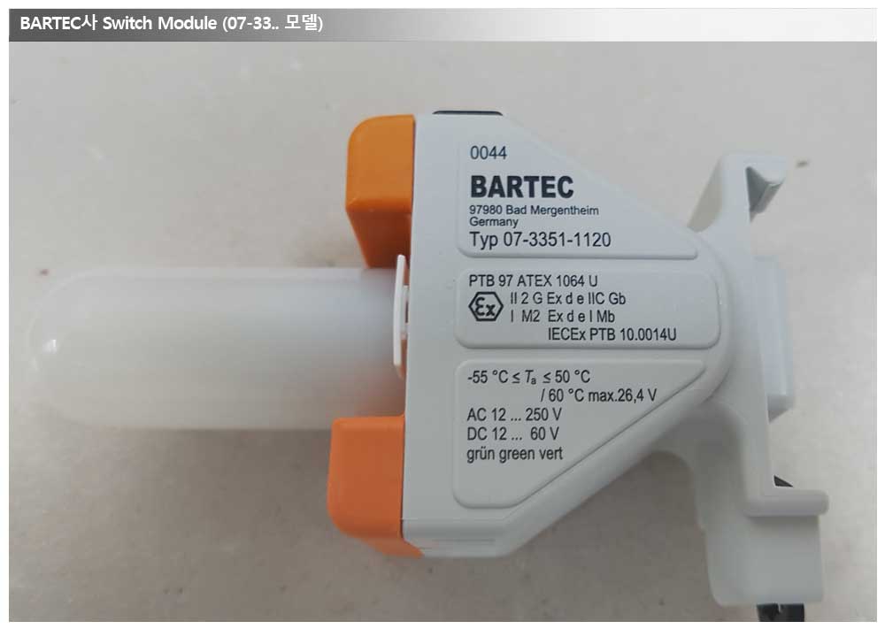 BARTEC사는 Switch를 구성할때 actuator에 물리는 Switch 모듈을 1-NO&1-NC, 2-NO, 2-NC 로 각각 분리하여 공급하고 있습니다.