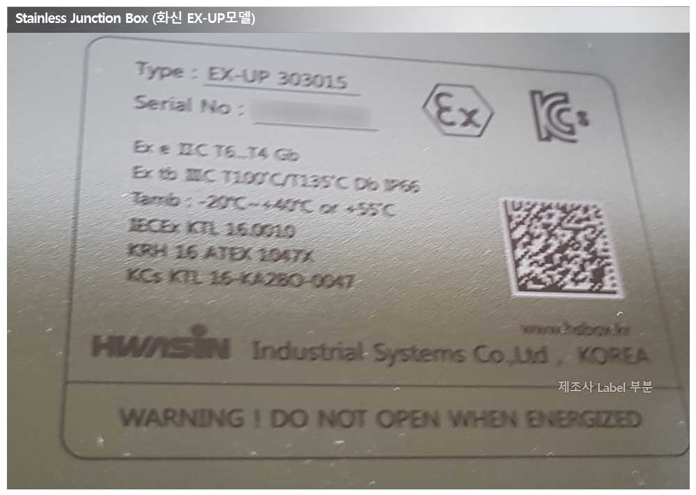 공급모델 : 방폭형 EX-UP 모델(Stainless Steel) 및 비방폭형 Steel 박스