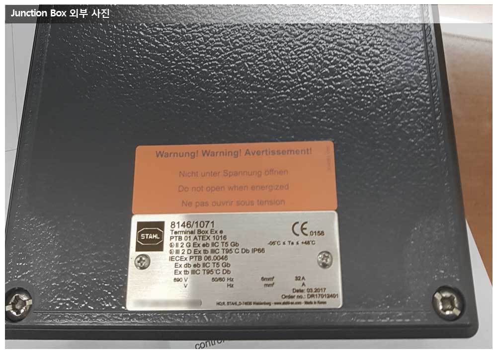 현대중공업, NASR프로젝트, R.STAHL사 Junction Box 페이지 정보 작성자 관리자 작성일17-04-24 14:55 조회16,040회 댓글0건 관련링크 이전글 다음글 목록 본문 공급품목 : R.STAHL JUNCTION BOX 상세사양 : 8146/1041, 8146/1051, 8146/1071 모델 특이 사항 : R.STAHL 의 국내 Workshop에서 가공하여 납기가 종전보다 4~6주정도 단축되었습니다. 댓글목록 등록된 댓글이 없습니다. 이전글 다음글 목록